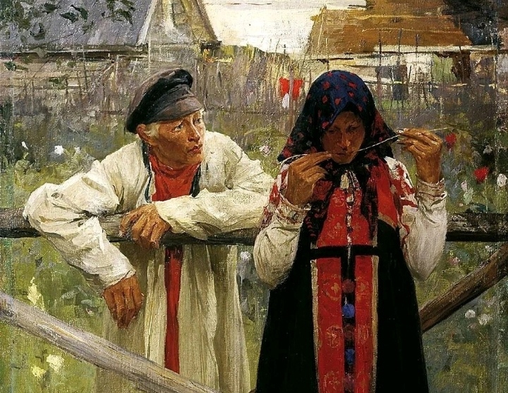 Фальк, «Лиза на солнце» (интересно естественное освещение и чистые цвета). В вот и русское воплощение картины: Михаил Несторов, «Великий постриг», за которое мэтр получил звание академика. Виктор Борисов-Мусатов, «Гармония 1899-1900», символизм и ностальгия. Павел Кузнецов, «Акация в песках Бухары» (1909), нетронутая цивилизация (сходно с мотивами Гогена).