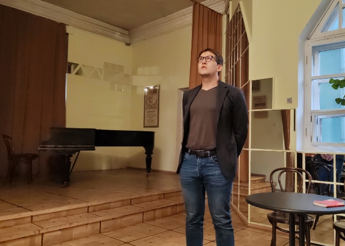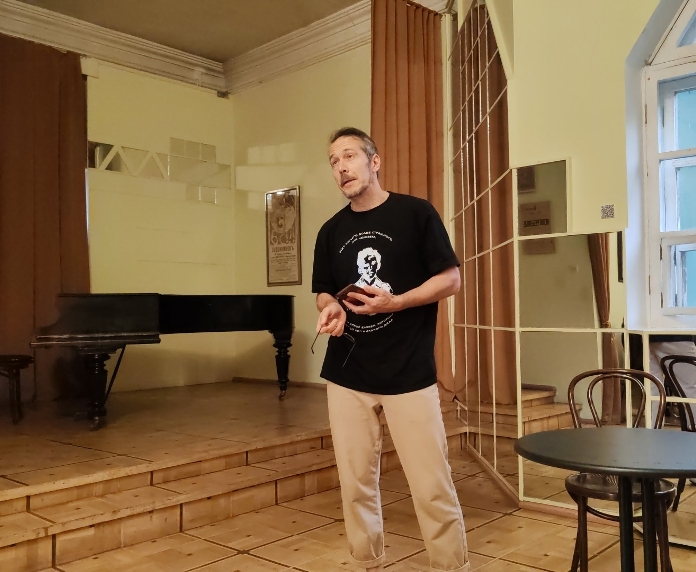 В Музее Серебряного века (Дом Брюсова) прошёл очередной поэтический вечер проекта «Культурная инициатива». Ведущий Данил Файзов во вступительном слове был краток, предложив первыми выступить в дуэте автору этого репортажа и поэту Андрею Фамицкому (ранее у нас вышла совместная книга, в которой были опубликованы стихи Андрея и мои пародии/шуточные отклики на них). Однако сегодня мы решили выступать порознь.