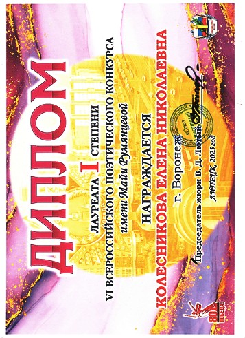 И вновь поэтесса Елена Колесникова стала победительницей конкурса. Поздравляем нашего автора с заслуженной победой и желаем дальнейших успехов.
