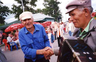 два деда, лихо пляшут и поют. Я записываю их на диктофон, и не