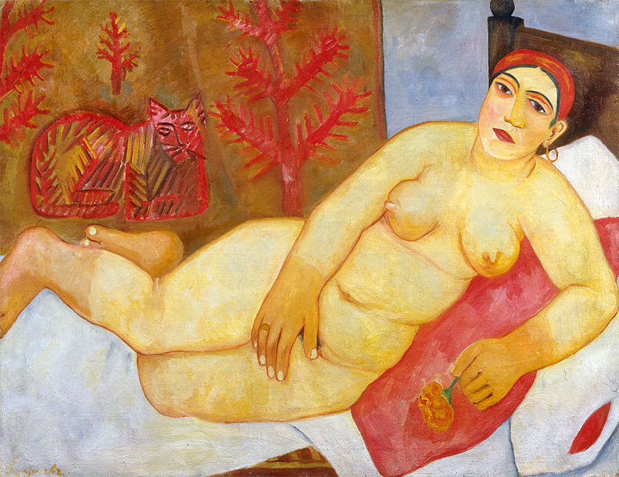 Гоген «Жена короля», а рядом картина Михаила Ларионова, «Кацапская Венера».