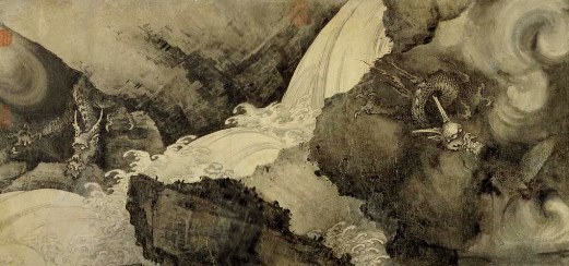 На картинах Чэнь Жуна с изображениями дракона видны его лапы, но не четыре, а, скажем, три, хвост, части туловища и голова. Дракон в целом никогда не виден, если появляется одна часть тела, другая исчезает. Дракона, нельзя остановить, принудить открыть свое тело зрению. Его тело трансцендентно плоскости изображения, оно где-то за ней, видно проблесками.