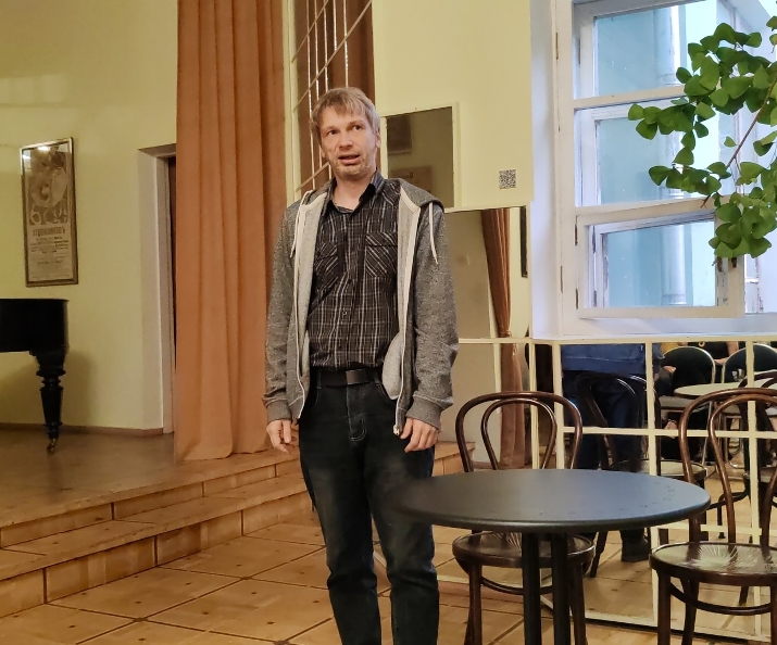 В Музее Серебряного века (Дом Брюсова) прошёл очередной поэтический вечер проекта «Культурная инициатива». Ведущий Данил Файзов во вступительном слове был краток, предложив первыми выступить в дуэте автору этого репортажа и поэту Андрею Фамицкому (ранее у нас вышла совместная книга, в которой были опубликованы стихи Андрея и мои пародии/шуточные отклики на них). Однако сегодня мы решили выступать порознь.
