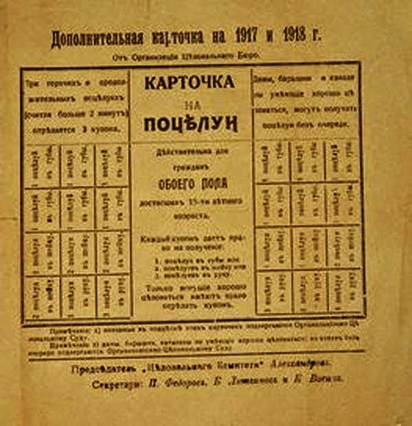 Обратим внимание на интересный документ: Карточка на поцелуи.