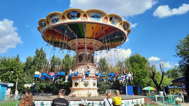 И все сразу встали в очередь к самой большой карусели. Стоять пришлось больше часа. Но время за разговорами проходило незаметно. Тем более, что обсуждали план на обход парка, куда кто хочет и как лучше организоваться.
