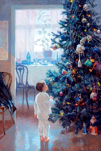 …где-то, в ином времени-пространстве – совершенно другой мальчишка, живущий с молодыми папой и мамой в огромной коммуналке, впечатанной в дом-громаду московского центра, медленно наряжает ёлку.