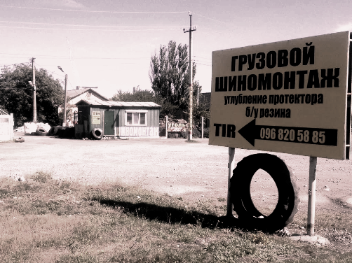 Вся резина знакомая, её чуть не каждый день привозят. Смотрю – опять мои жёваные-пережёванные. Вот здесь чинил, клеил, вулканизировал. И снова – всё в хлам. Места живого нет. И диски все гнутые, коцаные. Я их кувалдой рихтую. Мне бы прокатать их, а на чём? В Донецке есть у меня станок, так до Донецка сто вёрст отсюда.