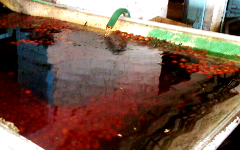 Ночью я все же потащился на завод, и это оказалось более чем своевременно. Я уже сообщал читателю об электрификации, а теперь скажу и о механизации. Механизация состоит вот в чем. Помидоры плавают в лотке с водой, студенты их там в каком-то смысле слова моют и затем отдирают плодоножки. Это пока не механизация. Механизация наступает тогда, когда они кладут вымытые помидоры на ленту, а та неспешным своим ходом идет к стене цеха и уползает в отверстие в стене. За стеной – другой цех. Там же, увы, находится пульт, включающий и выключающий ленту.