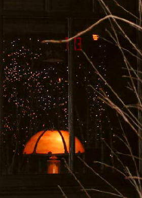 Деревце напротив окна стояло, увитое гирляндой с маленькими лампочками.